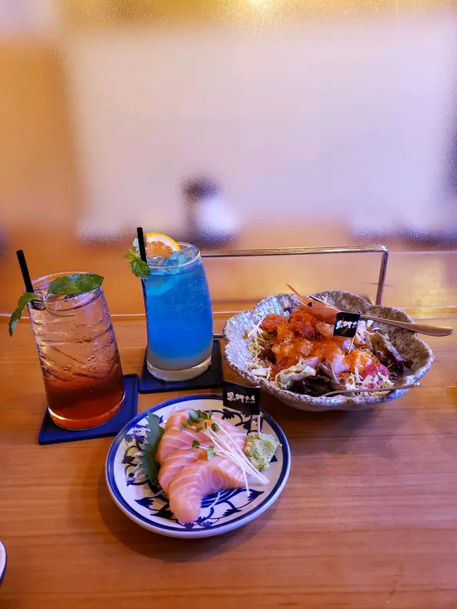 用上甜蝦、三文魚、白魚刺身,蟹子等材料,融合沙律醋和沙律菜,酸酸甜甜的味道,感覺清新開胃。