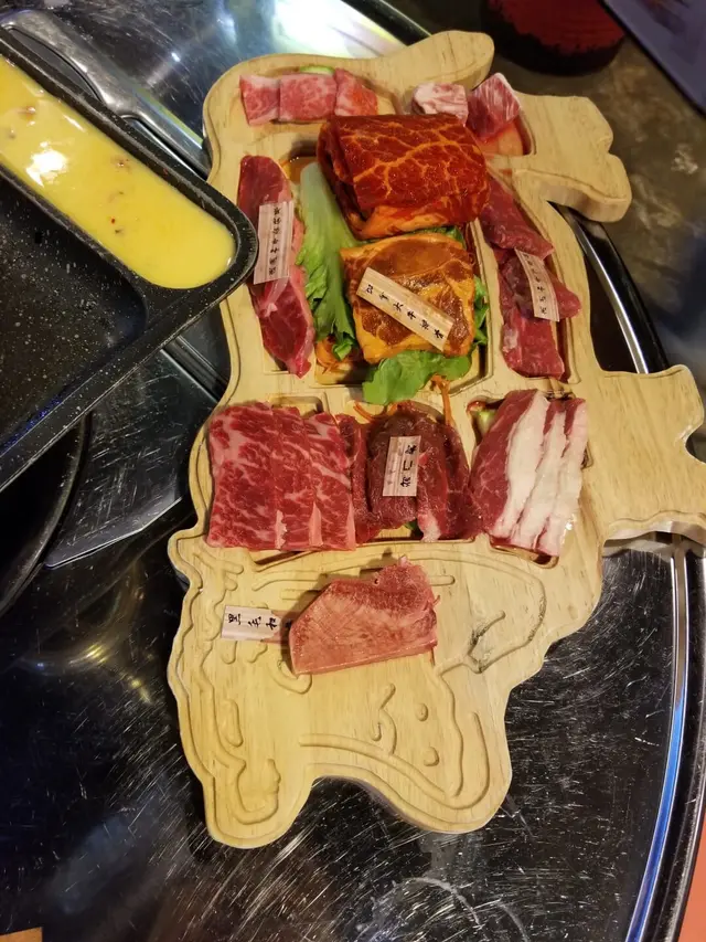 去到就會比碟牛你,幾大碟牛,顏色好靚。但問題食落去都冇牛味,都唔知呢碟係咩野肉黎。而且又好un.明明色水同雪花都好靚咁。我估係啲雪藏左好耐好耐好耐嘅牛,好平咁大量入貨,所以先乜肉味都冇晒。