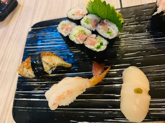 特上壽司盛合有超多款式,例如三文魚腩,拖羅等等,相當肥美,鮮味十足,值得推介!仲有蟹肉、蟹膏、三文魚子、海膽、甜蝦、帶子等等,味道鮮甜。也有鐵火卷(吞拿魚卷)。