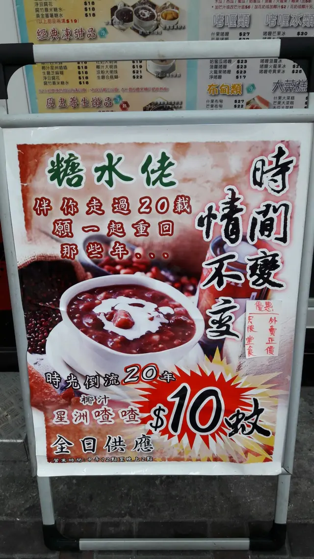 全日供應10蚊碗喳喳(時間變,情不變) milkmilk2022等级22017-08-0287 浏览 关注 今日路經官塘嘅牛頭角道,沿途好多零食店,食店,就是被這個廣告牌吸引住,10蚊一碗喳喳,我見咁抵食就決定要試一碗!講明只可堂食,外賣要收原價10蚊,有得坐仲要收平d我鐘意呀時間約下午4點多d,店內客人不多,座位任揀,店內裝修新淨,有點華麗的感覺,坐得幾舒服。等了幾分鐘我的凍喳喳送來了,豆豆明顯係少咗d,冇廣告牌的相片那麼多豆豆,但係只收我10蚊雞可以坐低慢慢食是可以接受的,味道方面ok的,適中的甜,整碗被我吃光了以上食记乃用户个人意见 , 并不代表OpenRice之观点。赞好分享全日供應10蚊碗喳喳(時間變,情不變) 糖水佬甜品 https://s.openrice.com/QrLT0ULCh00检举 milkmilk2022 2018年3月行經此地方巳經關門大吉了😣2018-03-28 回应 张贴 评分4味道5环境3服务4卫生5抵食用餐日期2017-08-02用餐途径堂食人均消费$10 (其他)