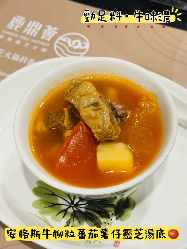 夏天最啱揀返個酸酸地嘅火鍋湯底,蕃茄湯加入大量安格斯牛柳粒、薯仔、蕃茄,最正係仲加入咗靈芝片,食之前飲返碗湯先😋牛柳粒牛味濃郁有嚼勁,薯仔已經滾到粉粉地起晒沙,飲完湯店員會再加返原湯打邊爐👍🏻