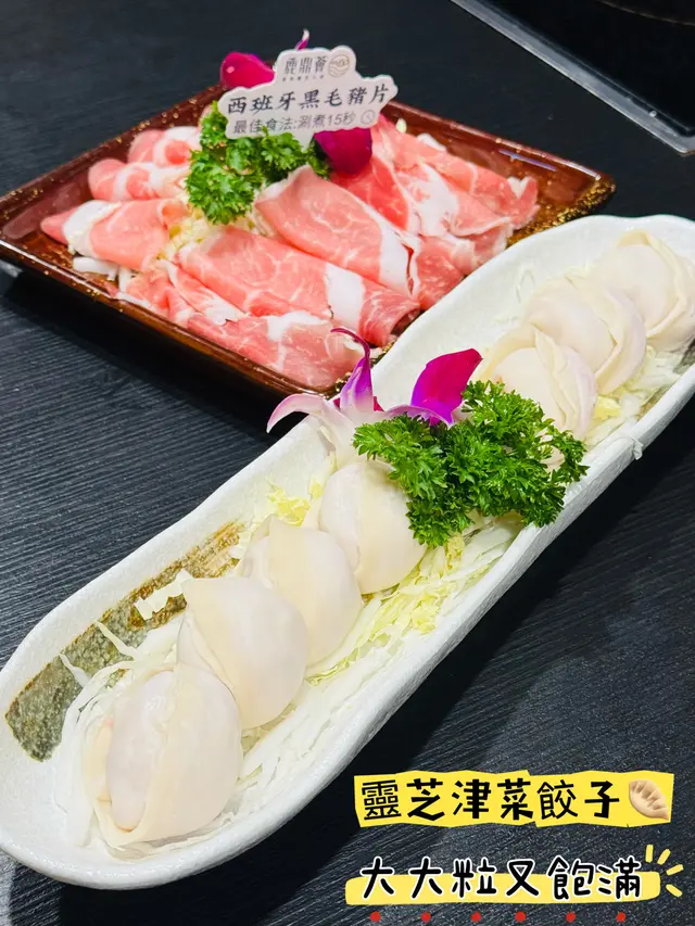 津菜即為大白菜,餃子裏面加入咗豬肉同靈芝粉,蔬菜嘅清甜加上肉類嘅鮮味,皮薄而餡料多,用靈芝粉配搭各種不同嘅火鍋配料,打邊爐之餘又可以養生