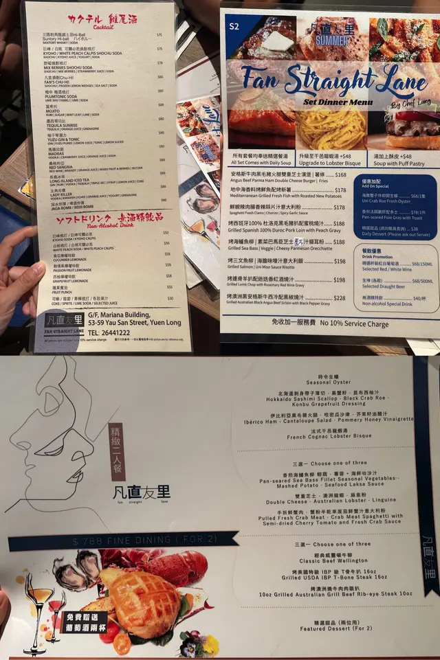 雖然已經第3次來吃了!但上一次已相隔4,5年多,已經忘記味道和價位,一看餐牌發現好划算,二人餐$788有前菜,有2款主菜,更可選16安士的T骨牛扒!重點是不用加一,真的明碼實價,香港絕少西餐廳可以做到這個價位!不過我們不算太肚餓,叫Set Dinner覺得已經夠飽!