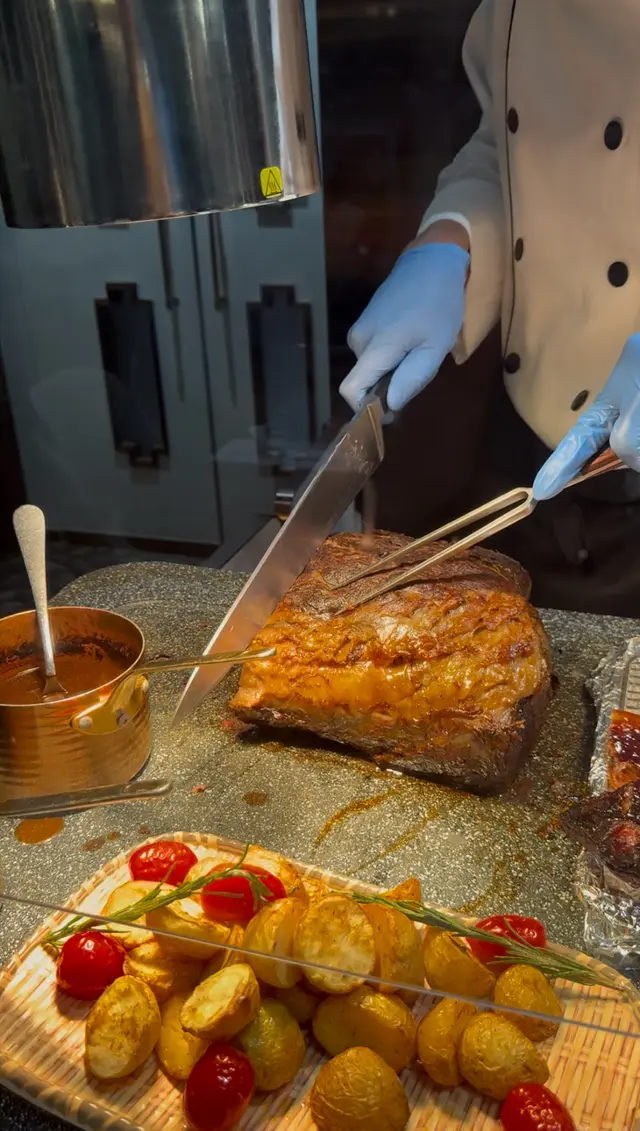 包括冰鎮海鮮(龍蝦🦞麵包蟹、蟹腳🦀青口、螺、蝦🦐)、刺身壽司、片皮鵝、肉眼扒、鴨肝多士、沙律前菜、凍盤、即叫即燒串燒同各式特式熟食🍜