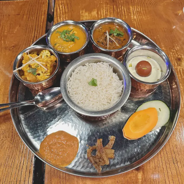 每份套餐有肉類(自選)、印度香米、蔬菜咖喱伴碟、扁豆湯、酸奶、酸青瓜、沙律,一份有齊尼泊爾塔里主食,想體驗尼泊爾人平日嘅常餐就要試試。我覺得依個套餐有齊我想食嘅美食真係一次過滿足所有願望,咖喱好出色搭飯食好開胃(d飯好香㗎),仲有青瓜、沙律等幫助消化,我發覺我幾鍾意尼泊爾膳食,有菜有肉有飯有豆等都真係好健康!