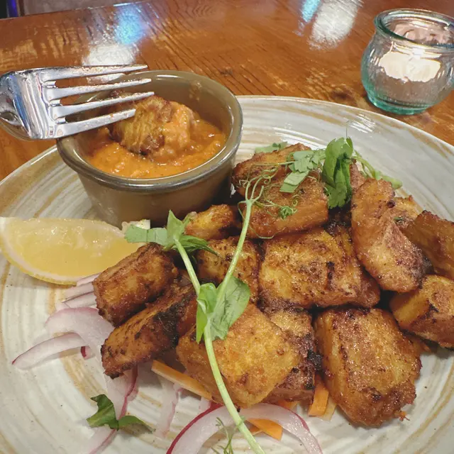 小食一定要食下串燒la,見個名咁特別就試下,以為係一串串,原來已經燒好放係碟方便食。豬肉好軟滑醃肉醃得好入味,點醬食更有異國風味,原來醬汁係尼泊爾風味辣醬,少少辣更惹味