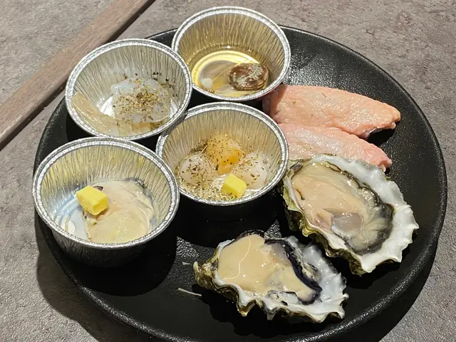 海鮮有牛油燒廣島蠔、珍寶生蠔、牛油香草燒帶子、牛油燒帆立貝、香草海鹽燒蝦仁、巨半殼扇貝、半殼青口、鯖魚、多春魚、墨魚仔、魷魚鬚、清酒煮蜆、虎蝦等等……(仲有好多款式)