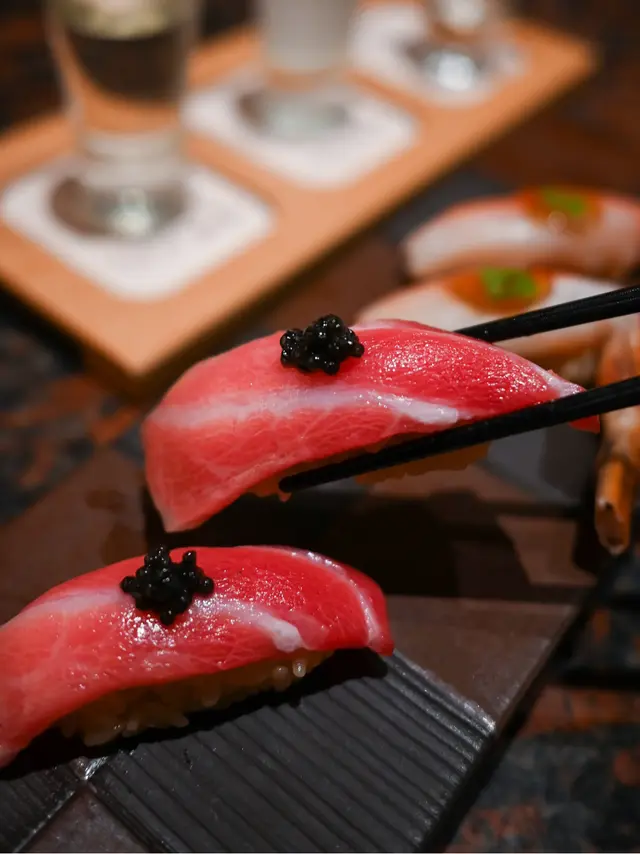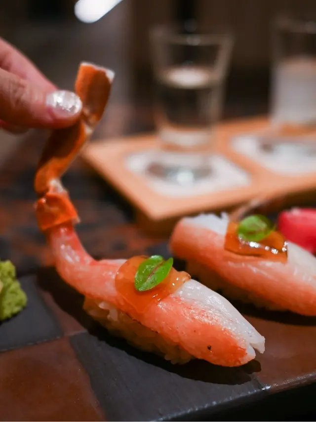 壽司三連發,除了[煙燻平政壽司]還有[大吞拿魚腩]油脂豐盈,法國魚籽醬點到即止;[松葉蟹腳]配柚子醋啫喱,清新解膩。