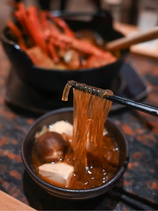 [龍蝦二食]尤為亮眼,刺身新鮮晶透,清甜彈牙;以龍蝦頭熬湯,熱騰騰,香濃鮮美,加入蔬菜粉絲,吸湯且暖胃。