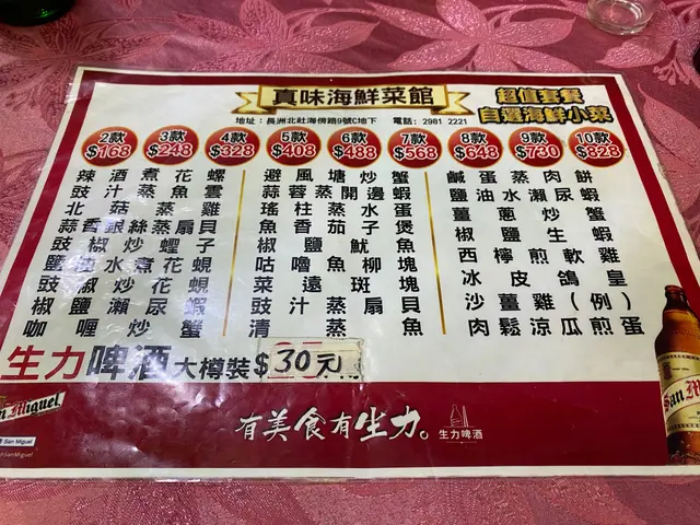 出乎意料地不錯的海鮮 foodiez.la等级42020-11-28788 浏览 关注 天雨綿綿加上閒日,遊人不多,好幾間海鮮菜館都在不斷拉客,這家說$248, 3款海鮮多送1款,即4款,而且沒有加一,決定試試1剛坐下發現負評甚多,心有不妙,但已經坐下只好照點菜椒鹽瀨尿蝦和我們預期一樣是細隻的size,但椒鹽味道不錯,而且瀨尿蝦新鮮不是死蝦,放下一半心頭大石椒鹽魷魚熱辣辣炸起,炸漿薄身,魷魚有咬口,而且份量不少,好吃蒜蓉蒸扇貝4隻的size都細,幸好有蒜蓉熟油和粉絲搭救,味道很香,不過不失豉汁蒸魚雲份量很足,原個魚頭上,好吃的豉汁味道而且不會過咸,整個吃光總的來說是我讓食評嚇了一跳,但味道的確是不錯,閒日也沒有加一,我們都很滿意以上食记乃用户个人意见 , 并不代表OpenRice之观点。1分享出乎意料地不錯的海鮮 真味海鮮菜館 https://s.openrice.com/QrLT0JIex00检举 张贴 评分4味道4环境4服务3卫生5抵食用餐途径堂食
