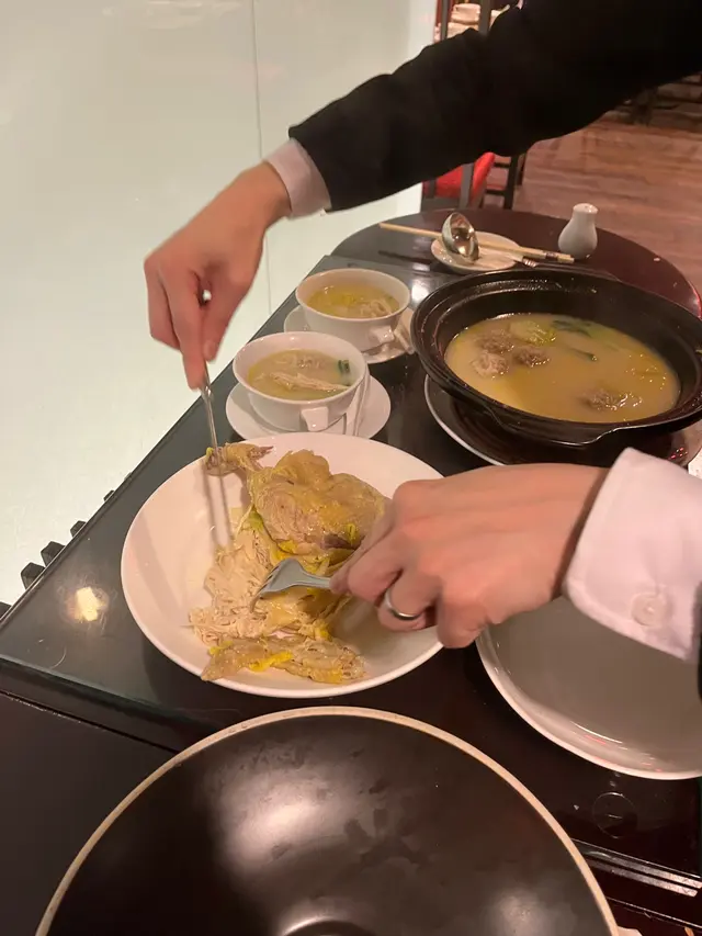 💯俾我地影完相就幫手分左雞湯料同𢳂湯俾我地, 半隻雞足足有6碗😆