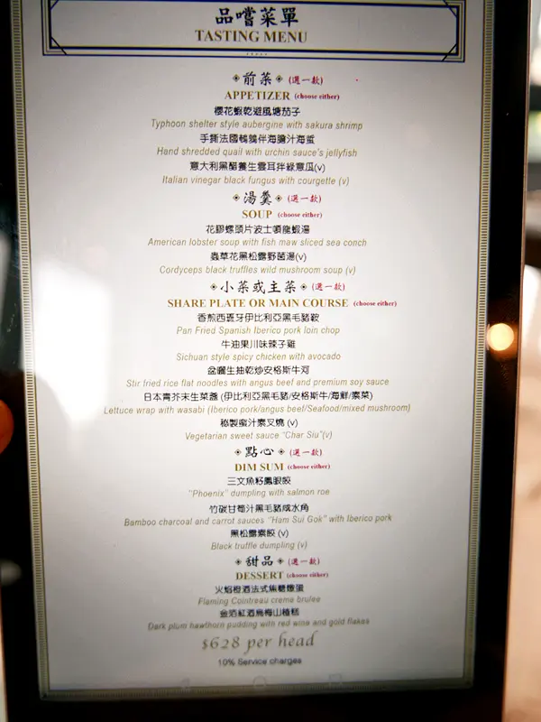 Tasting Menu以人數收費,每位$628,總共有5 courses,一次過嚐遍幾款創意fusion菜式。