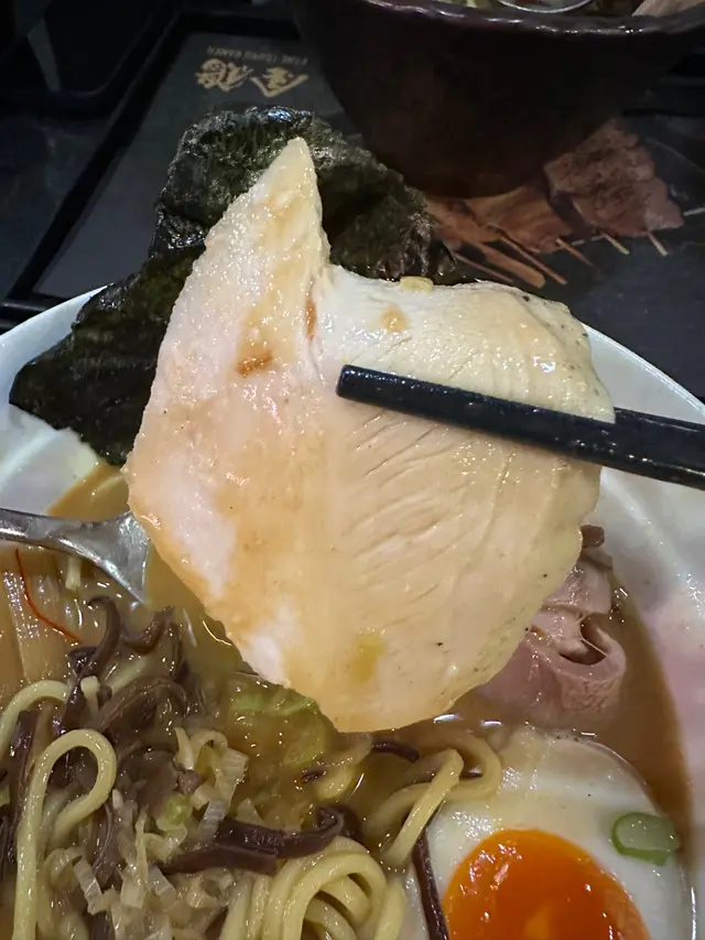 見佢餐牌寫住「店長推介」咁就緊係試下啦!湯底飲落有好濃郁既雞湯味!d精華響曬個湯底入面,而且有泡泡,幾得意。白雞肉有兩大片,非常嫩滑;豚肉兩片,流心蛋同埋有炸牛蒡幾特別,炸牛蒡香脆,唔油,拉麵掛湯力十足,每啖麵都沾滿骨膠原😙。