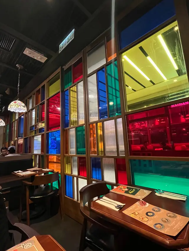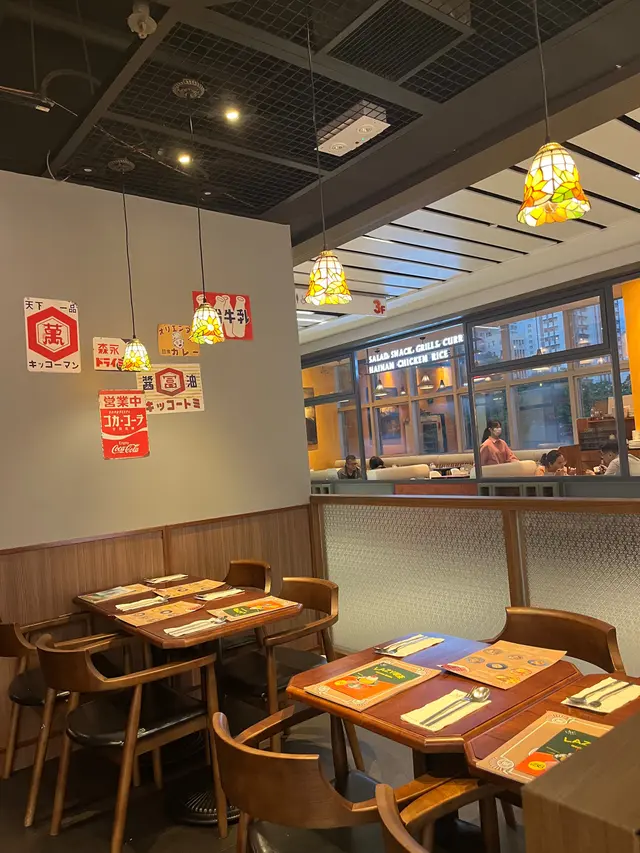 裏面全部都是木枱木凳,加上柔和的燈飾,