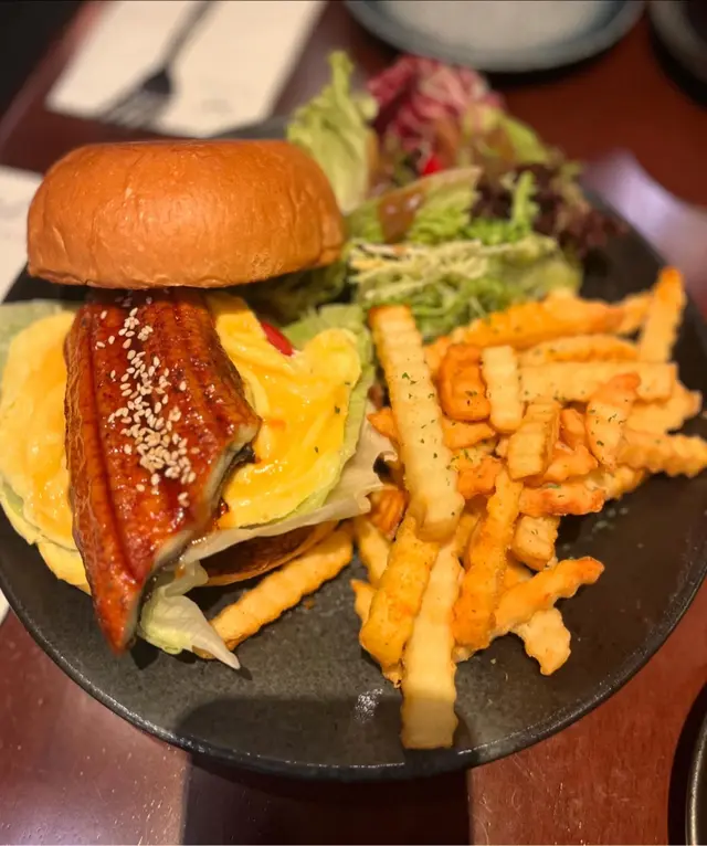 蒲燒鰻魚炒蛋漢堡配薯條 $88