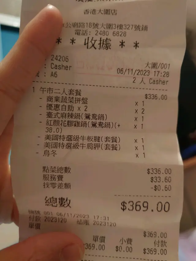 埋單找數$370/2