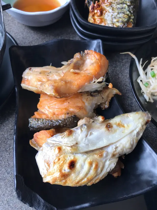 燒三文魚骨腩,好驚喜! 係新鮮即整, 魚肉熱辣辣又嫩滑, 一般放題都係又凍又硬嘅, 所以呢個係我推介必食。