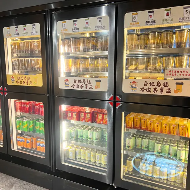 大雪櫃除左有汽水之外,仲有多款冷泡茶,有桂花烏龍、白桃烏龍等等