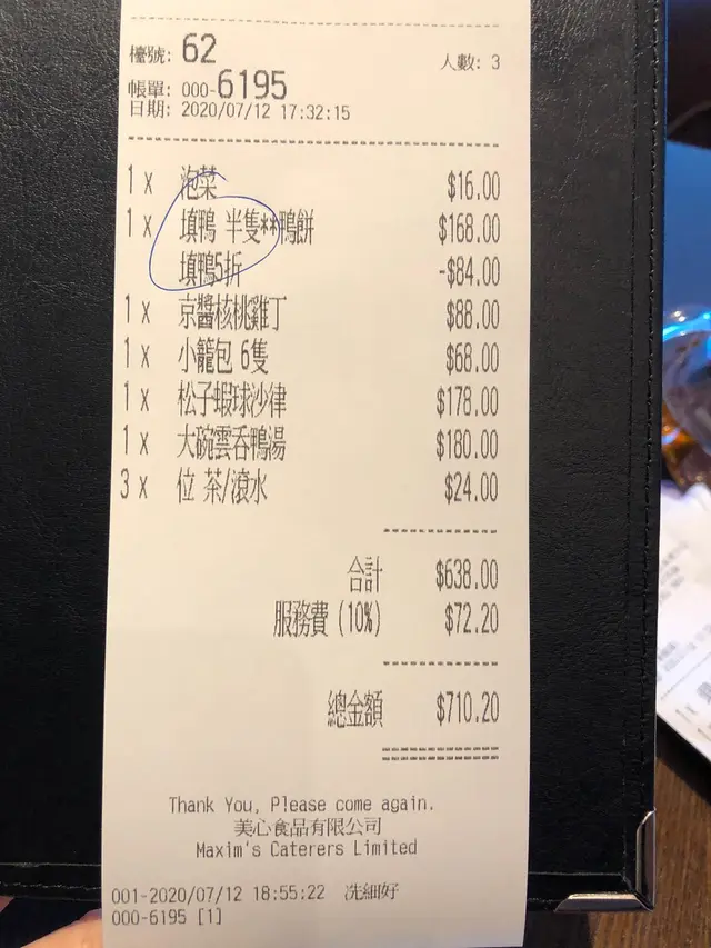 填鴨雖然半價,但服務費同樣以原價計算的。