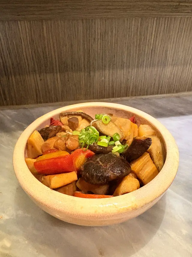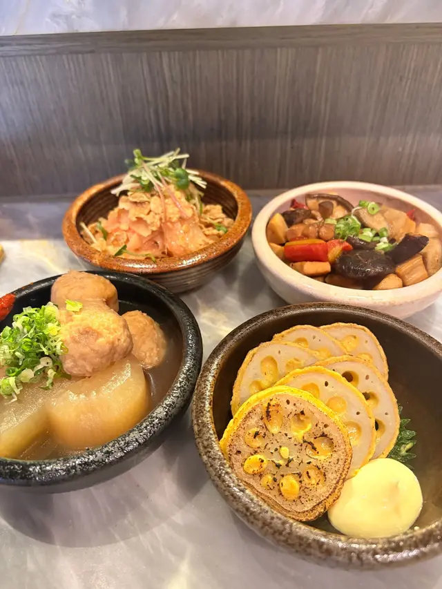配料豐富,包括冬菇、蓮藕、雞肉和蒟蒻等,每一口都吸滿鰹魚湯的精華,溫潤甜香,索汁入味,好令人滿足。
