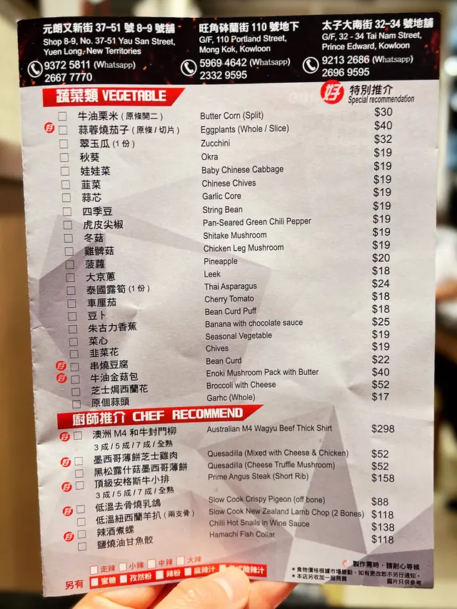 這間位於油麻地的港式串燒餐廳主打即叫即燒,於太子及元朗均有分店,價錢定位親民,適合一班人聚會。