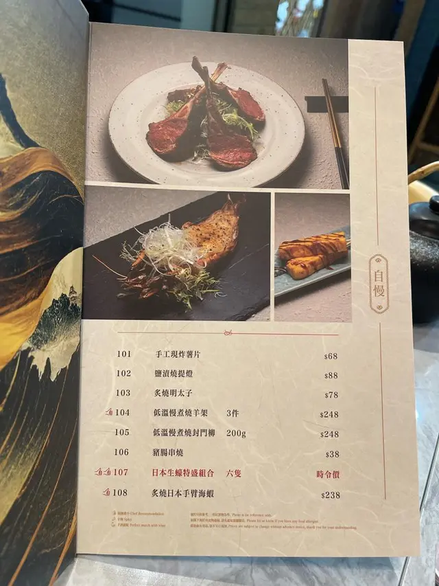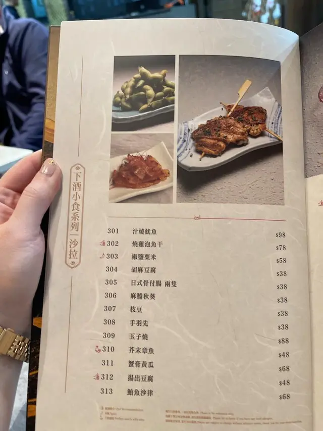 可能新開張關係, 食物選擇唔算多, 串燒、小食、主食、幾款刺身, 樣樣有d。暫時未有drinks list, 暫只提供罐裝汽水。