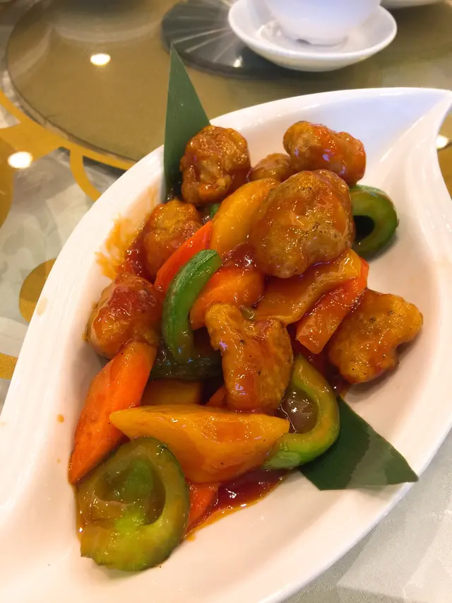 啲水蜜桃好甜好林,啲咕嚕肉彈牙超好味,忍唔住食左好多粒☺️