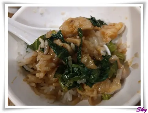 飯面加上菜粒, 與雞粒一齊食, 多一份口感, 雞肉也不會太硬身.