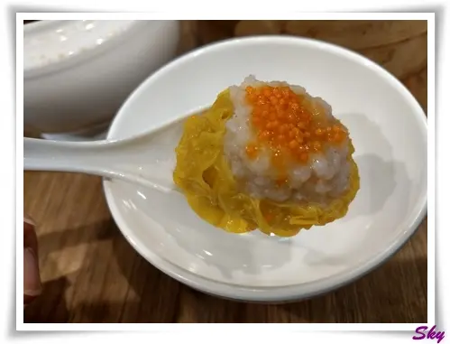 饀料唔會太多肥肉, 偏外瘦一點, 無咁油膩, 多了蟹籽, 入口帶點卜卜聲, 雙重口感.