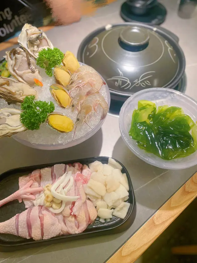 有大大隻生蠔&鮑魚&蝦🦐,全部都非常新鮮,我覺得呢款必叫🤩咁大份$200都唔使,款款海鮮都有啲,好抵食😍加埋靚靚湯底,好啱一家大細,養生又滋補