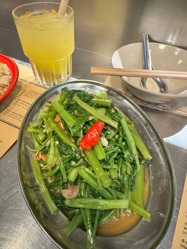 最後,我哋仲點咗飛天通菜,清脆爽口,搭配特製的蒜蓉醬,味道更加突出,係一個非常好的配菜,平衡咗其他菜式的重口味。