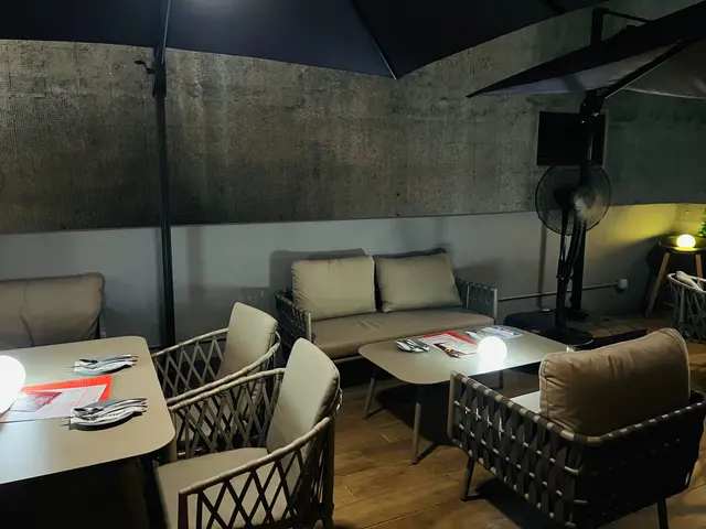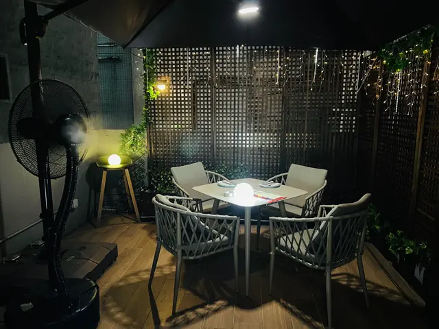 戶外食野當然最怕就係會唔會好熱,不過我覺得呢度都唔算太熱~因為佢有兩部風機,仲可以有啲Mist噴出嚟,所以即使係30幾度都覺得OK~呢度total有四張枱,所以就算滿座都唔會好嘈,而且有兩個千秋位可以打卡🤣