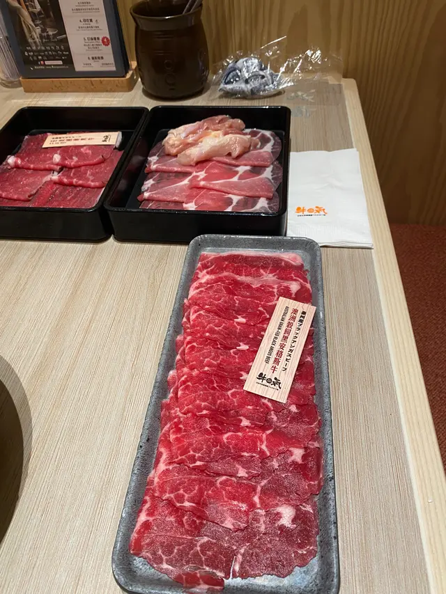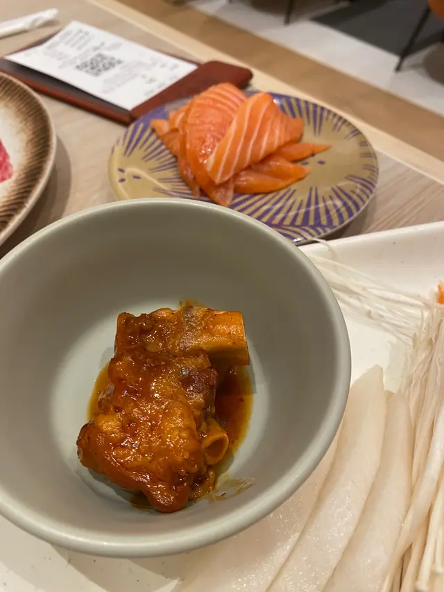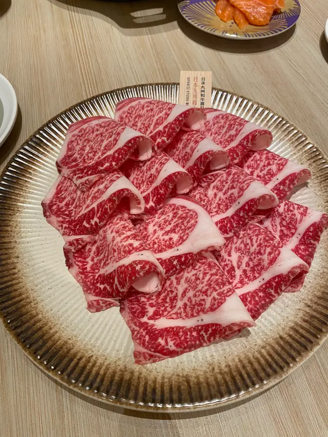 朋友常說牛氣好多嘢食,昨晚就去試下,店舖好大,很乾淨,有好多達摩裝飾好可愛,入到去真係好多嘢食,淨係熟食都有十幾廿款,有前菜,小食,甜品,生果,有D熟食都幾特別,例如泰式牛濃湯/咖哩牛筋腩,飲品亦有好多款式。打邊爐的款式都好多,連泰國媽媽麵都有,我哋叫咗泰happi主題$388蚊餐,先來一盤海鮮,有大海蝦,青口,帶子,魷魚,花膠,好新鮮。另外仲有三文魚刺身,可以過下刺生癮😅而且仲可以無限追加😋湯底就叫咗牛骨濃湯,好有牛味👍🏽嚟到牛氣當然要點牛啦,日本九州和牛,油花均衡,另外亦試左三款牛,都很有牛味,又唔韌。店內實在太多美食,不用追加都可以食到好滿足,唯有下次再食多啲😋😋