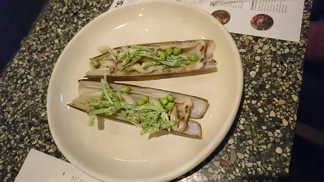 1.4 Razor Clam / Sugar Snap Peas / Soybean Butter 呢個蟶子應該似蒸至緊緊熟, 再搽上牛油味醬油而甜荳則是生食只是混合了些調味沙拉白汁, 蟶子新鮮同時質地掌握到位, 只是配凍的生甜荳絲就真的是有點格格不入, 首先個蟶子係暖的, 配凍菜絲感覺很不協調, 一下子將口內溫度由暖再下降至凍? 先前一直下來已經是涼菜為主, 而蟶子的暖口感襯醬油, 再配一些炒香過的甜荳絲不是來得自然順暢很多嗎? ! 而炒過的甜荳會更甜口之餘亦炒走草青味,