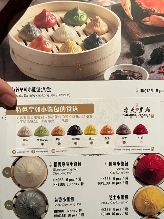 我係為左呢個八色小籠包而黎🫣跟住張紙既順序去進食,原味、槽溜絲瓜、鵝肝、黑松露、芝士、蟹粉、蒜香、川味😚個皮咬落會帶點厚度,不過裏面有好實在既肉餡同豐富既湯汁😎每一粒既口味都幾突出,當中鵝肝最有驚喜,黑松露同川味亦得我歡心😍