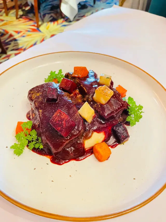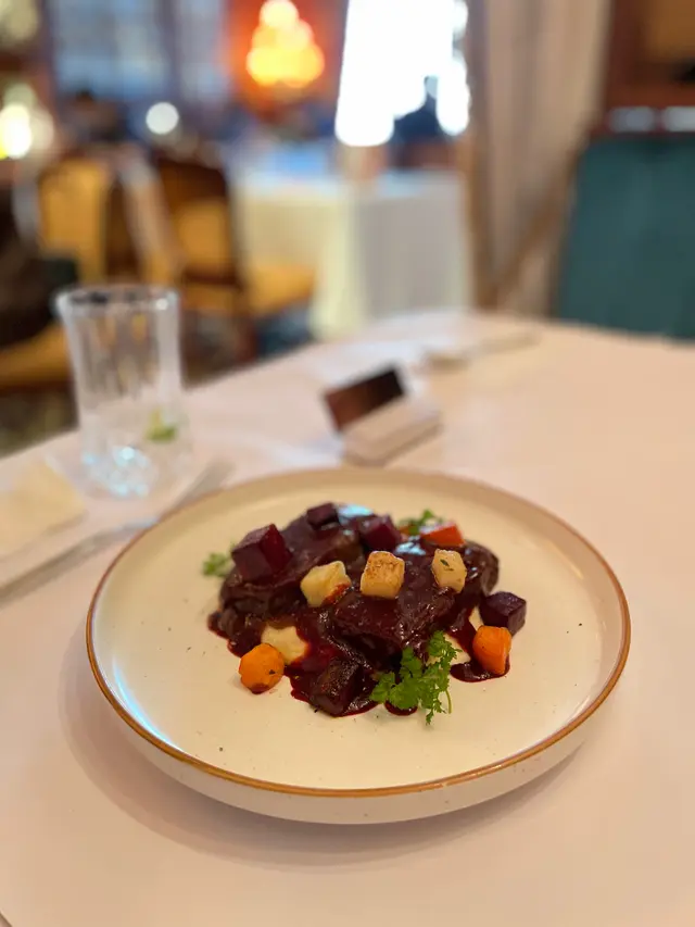 1.紅酒會牛面頰肉配薯蓉牛肉很好吃但比較林冇乜咬口感覺上用匙羹食都可以但味道是可接受的