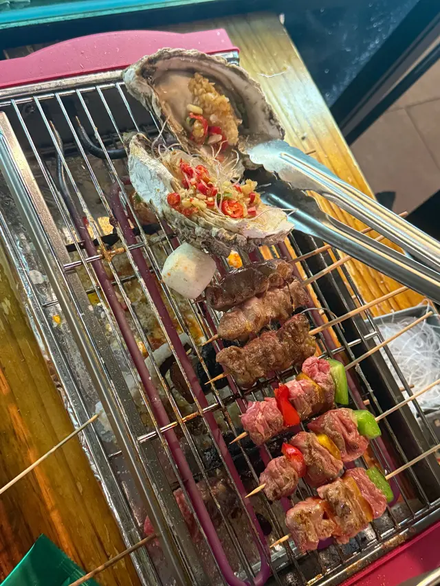 只淨佐敦的蝦蝦燒 kakiku.bae等级32025-06-211K 浏览 关注 好耐冇食燒烤,今次去蝦蝦燒真係食到開心!仲有一蚊打邊爐,有三款湯底:蕃茄、豬骨同麻辣,食物種類多到眼花,海鮮必然係主角。生蠔一咬下去,肥嘟嘟又滑,邊緣燒得脆脆,加埋蒜蓉辣椒油,鮮甜中有少少辣味,真係好味!豬大腸外脆內嫩,咬落去即爆油香,孜然同辣椒粉調得好惹味,油淋淋嘅根本停唔到口。羊肉串肥瘦相間,炭火滋滋響,肉質juicy,配上孜然粉,香噴噴。牛肉串外焦內嫩,咬下去肉汁四溢,啤酒一啖,正!最後係雞軟骨,金黃酥脆,每啖都咔啦咔啦響,椒鹽同七味粉令我食到不停。鮑魚燒得彈牙,帶點焦香,甜甜地仲有蒜蓉味,食完好滿足。111以上食记乃用户个人意见 , 并不代表OpenRice之观点。赞好分享只淨佐敦的蝦蝦燒 蝦蝦燒 https://s.openrice.com/QrLT0slnS00检举 张贴 评分5味道5环境5服务5卫生5抵食用餐途径堂食