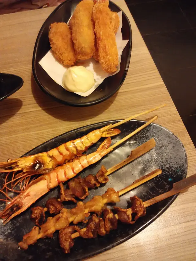 串燒: 雞軟骨和雞翼正常, 雞腎又乾又硬又無味, 雞肉串燒過火, 黑黑地。碳燒海蝦d肉霉霉地, 我地叫多幾次就話限定, 吾俾我地點, 是放題嗎?