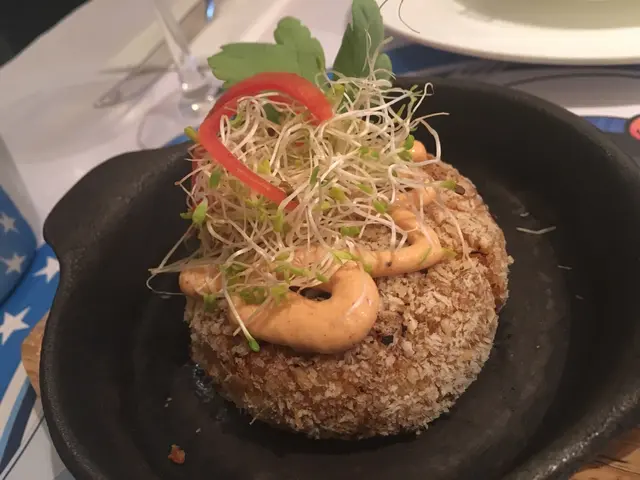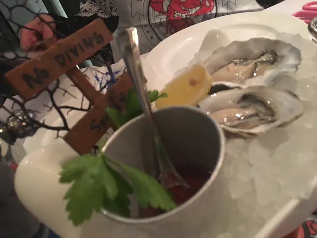 兩個女仔叫咗兩隻生蠔, 兩杯白酒, Louisiana Crab cake, crabmeat stuffed mushrooms, fish n chip and hot seafood bag with 3 options.