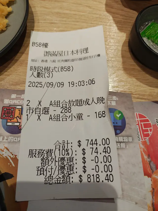 可以任食榴槤 榴槤迷必去 SCK13等级42025-09-14116 浏览 关注 咁啱爸爸收早,我哋一家就出發去旺角食放題,呢間餐廳夠晒就腳,地鐵站E出口行20秒就到我哋叫左套餐A,可以任食77款食物,未開始點嘢食,我就比部爆谷機吸引咗去咗𢳂爆谷食😋呢度刺身壽司有多款選擇:希靈魚、三文魚、油甘魚、金䱽魚壽司、海膽手卷等等不過今次我哋專攻熟食,推介惹味蒜蓉燒茄子、蒜蓉燒茄子、燒紐西蘭羊鞍、蒲燒鰻魚我就最鍾意食虎蝦天婦羅,叫咗起碼8隻自己食到甜品時間,成個甜品櫃同雪糕櫃,有我最愛嘅馬卡龍、哈蜜瓜西瓜、果汁雪條最正係有得任食馬來西亞極品榴槤,夠晒榴槤香同Creamy,榴槤迷不容錯過 以上食记乃用户个人意见 , 并不代表OpenRice之观点。赞好分享可以任食榴槤 榴槤迷必去 御滿屋日本料理 https://s.openrice.com/QrLT0kcLU00检举 张贴 评分4味道5环境5服务4卫生4抵食用餐途径堂食
