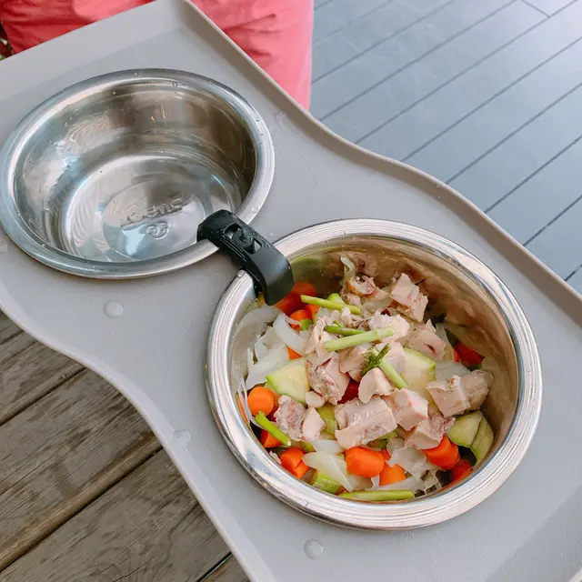 狗狗鮮食餐,他們的鮮食餐有兩款選擇,而我們揀選的那款有雞胸、甘筍、翠玉瓜,狗狗見到已經急不及待想食,而且份量幾多!