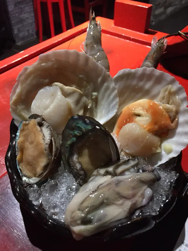 海鮮拼盤係人頭鮑魚,大扇貝同新鮮蠔,用冰底座住免得佢會壞,好貼心❤