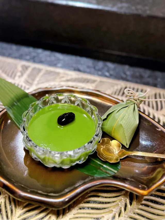 🥢綠茶布丁甜品配紅豆大福