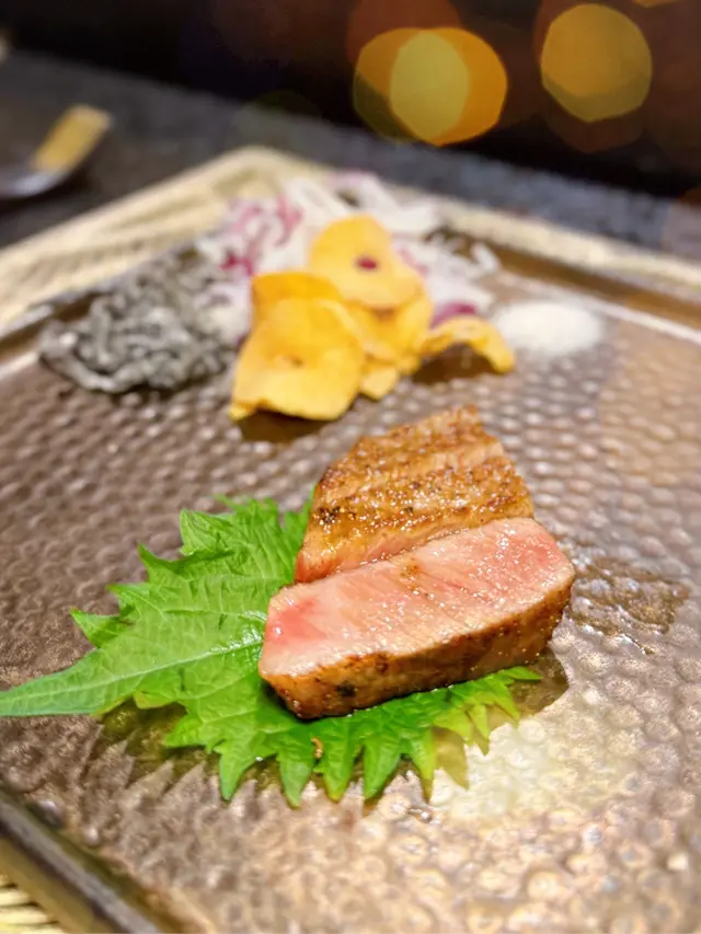 厚切和牛 叫咗五成熟 燒得完全係啱啱好 表面香脆 內裏半生熟 而且和牛嘅油脂非常充足 放入口可以話係入口即溶 搭配佢哋自家製嘅炸蒜 口感更加多層次