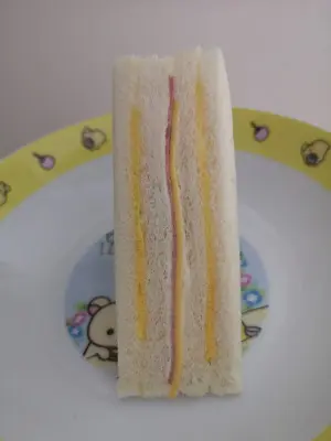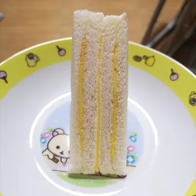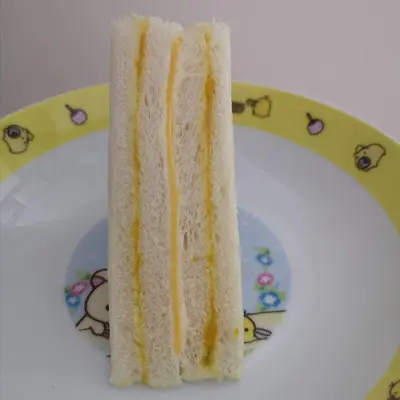 配料有白吐司、奶油、美乃滋、蛋皮、火腿、芝士片
