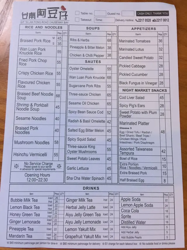 中英對照的點餐紙上有着不少台灣地道菜餚和夜市美食,