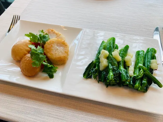 之後個脆餅帶子根本上唔知點解可以放埋一齊,脆餅有啲脆少少甜味冇乜特別,帶子上粉炸過略嫌薄左少少但係味道可以,但係唔知點解呢就係佢嘅放埋一齊,完全唔夾。薑汁芥蘭其實係薑粒芥蘭,汁係完全冇薑味你要連埋粒薑粒石先至會有㗎嘛,其實叫薑粒㗎啦咪好地地囉。