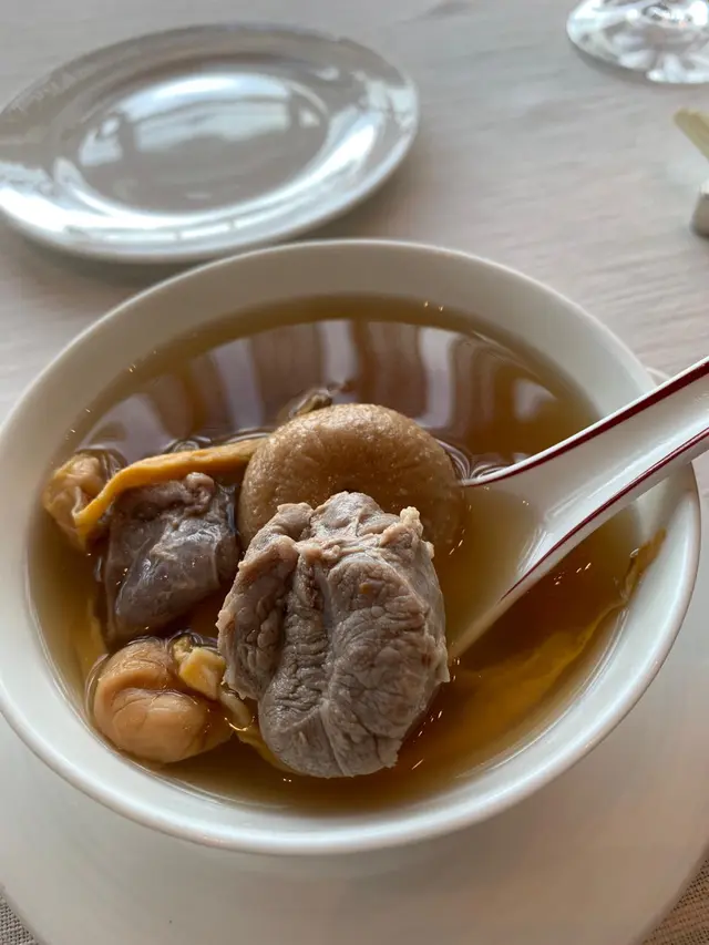 跟住上嘅係一個湯用日月魚無花果豬展燉嘅,他本身好濃味,味道也十分好。但可怕嘅事即將發生,湯裏面竟然發現咗一條蟲,一間五星級酒店,米之蓮二星級餐廳,湯裏面竟然有條蟲,有圖有真相。之後叫個侍應過嚟睇睇,個侍應竟然同我講呢一條係日月魚嘅邊。我入廚多年一睇就知呢一條係無花果裏面嘅蟲,因為無花果本身好甜所以係好容易有蟲,酒店堅持用原粒無花果燉湯,咁就真係捉蟲啦。我要求幫我換咗碗湯之後侍應再出嚟交代,廚房師傅確認那是一條無花果我的錯。其實是應該去廚房尋求一下增山先至好喺客人面前解釋,如果唔係真係攞假黎調。一間五星級酒店米之蓮二星級嘅餐廳我痴線,竟然會發生呢啲事,我只可以歸咎於因為我食咗一個窮人lunch Menu。