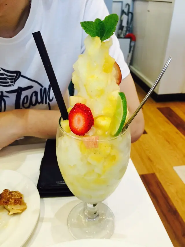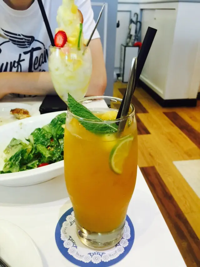 我自己飲個杯蜜桃茶,其貌不揚,但有蜜桃清香同甜度適中。我老公個杯綜合水果