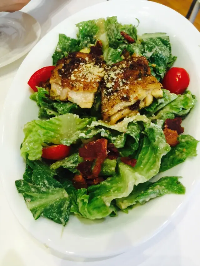 個雞肉𤩑撒沙律,每塊菜都沾到少少汁,雞肉夠熱、夠味同夠嫩,初時只係驚唔夠